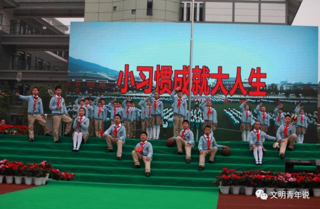 在欢快的乐曲中大家朗诵了《小学生文明礼仪儿歌》,让文明之花在心中开放。