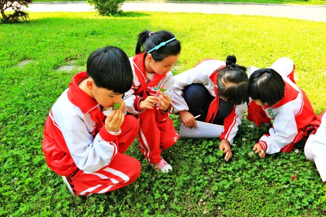 人们久盼的春天携着袅袅东风,悄悄地、轻盈地向我们走来了,我们把教室搬到了室外,趴在地上细细描写着春天。