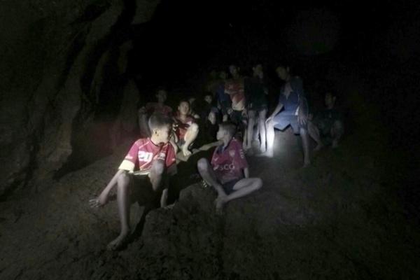 被困泰国清莱府山洞的少年足球队员(7月2日摄)