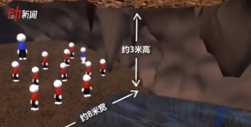 被困的孩子们位于一处泥泞斜坡,洞室约8米宽3米高,身后洞穴依然向后延伸。