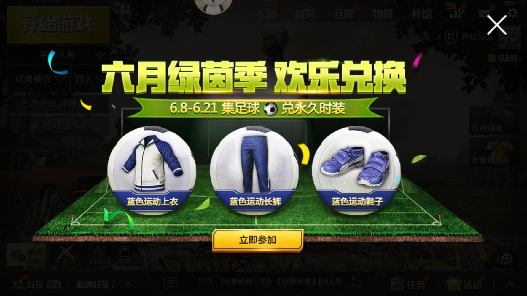 作为时下最为流行的「吃鸡」游戏,《绝地求生:刺激战场》上线了相关的日常活动。在任意模式中累计淘汰 3 人、5 人、10 人、15 人以及每天登录都可以完成相应任务领取「足球」道具;同样地,参与 1 局、2 局、3 局经典模式比赛也能够领取足球。足球可以用于兑换游戏内时装。