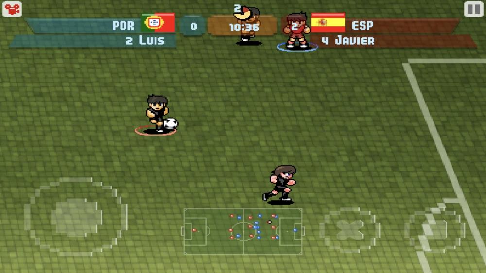 正如名字所述,《Pixel Cup》采用了像素风格,完全没有什么繁琐的模拟经营、球员养成部分,只需要选择喜欢的代表队就直接进入游戏对局,突出简单粗暴打开就是干的特质。