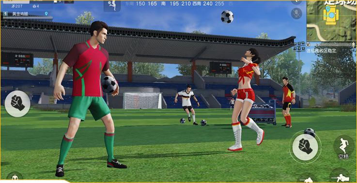 《荒野行动》的世界杯策划显得更为用心一些:游戏在休闲模式中新增了名为「决胜十一人」的玩法,每局游戏将会有 88 名玩家被系统自动划分为 8 支十一人组成的「球队」展开争夺,每支队伍的成员会配置有统一的球服套装。十一人一起行动,更强调了团队协作的重要性。