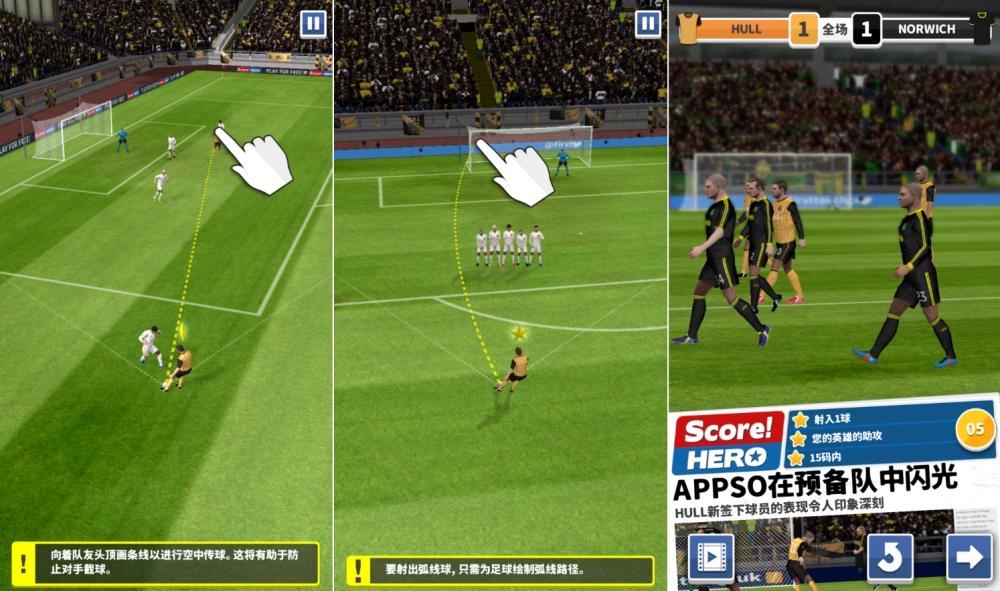 这款游戏有着超出预期的高质量 3D 画面,操作以「画线」为核心,比如说画一条引向球门的线便是射门,画一条直达队友头顶的线则是高空球传中。线的长短代表了力度的大小,而自由画线则为球路提供了无限的可能性,玩家得以搓出各种弧线球与传切配合,手起球出的操作带来畅快的游戏体验。