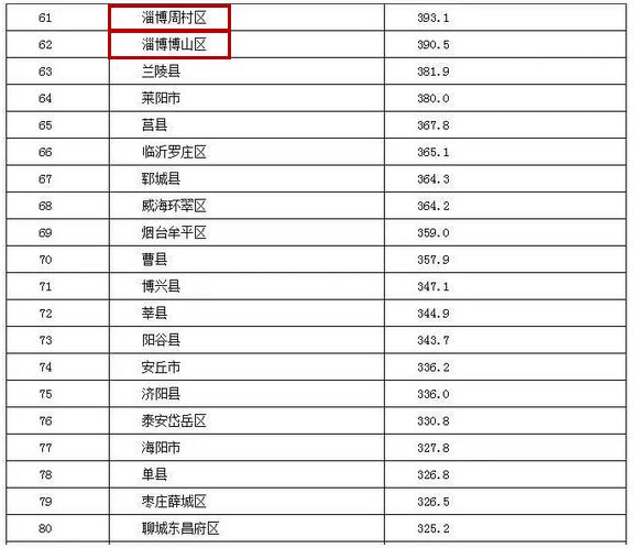 第62名博山区,390.5亿元。去年排名全省第61名,全区第5名。