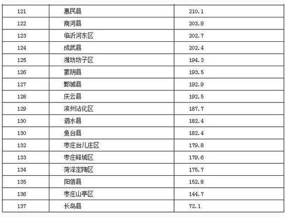 山东省137个县(市、区)