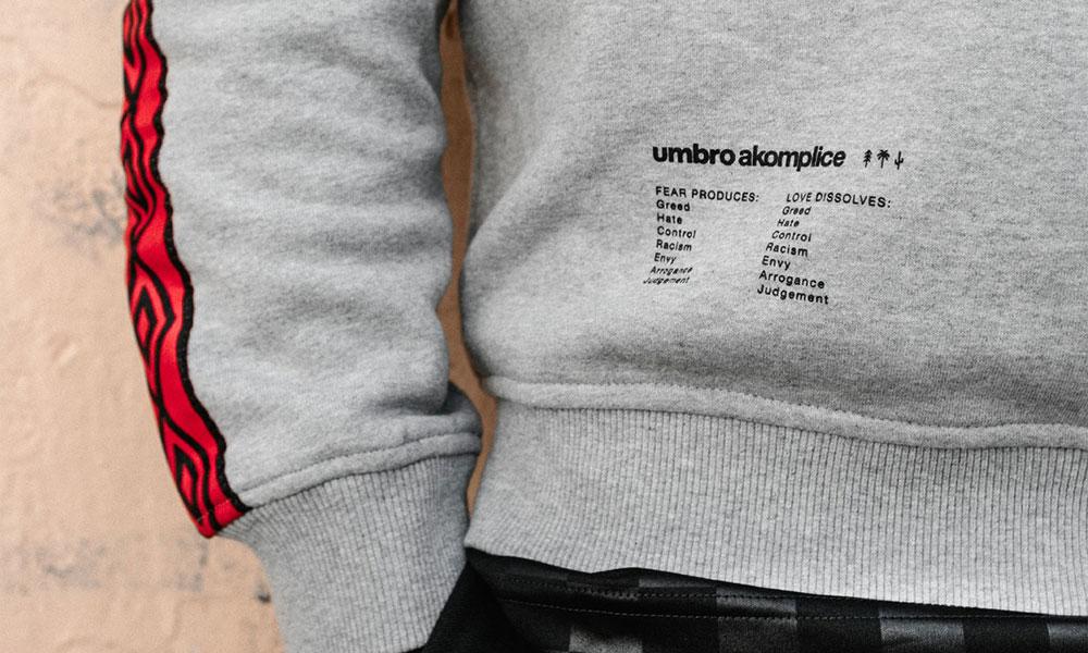 不少人认识 umbro 都是从 VETEMENTS 的联名系列开始,但这个来自英国的知名足球服装品牌的潮牌之路可不止 VETEMENTS 一站这么简单。近日,umbro 携手美国街头品牌 Akomplice 带来了全新的联名系列。将足球元素融入街头潮流,umbro 与 Akomplice 携手打造了一系列运动套装,包含运动卫裤、足球 T 恤及短裤等一系列常规单品,全方位满足各种穿搭需求。在细节设计上,umbro x Akomplice 采用 “Love”、“Trust”、“Compassion” 及 “Gratitude” 四个英文单词及四个被划掉的反义词打造了该系列的独特 Logo,创意十足,在运动装中细节可以说是很到位了。据悉,该系列将于 6 月 10 日俄罗斯世界杯首日正式发售,有兴趣的朋友到时请不要错过!