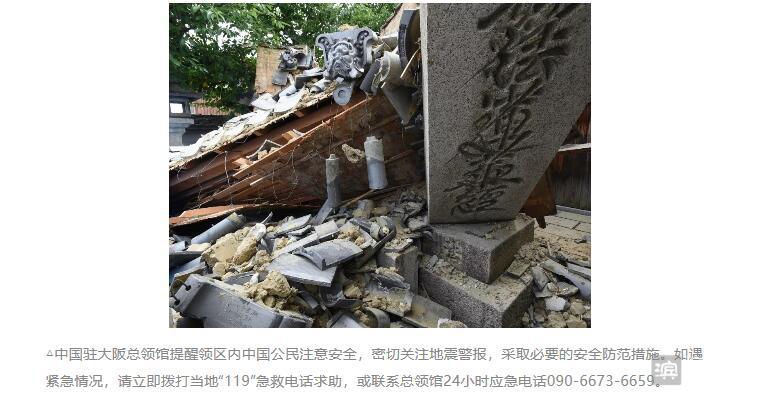 1.北京时间18日早晨,日本大阪发生6.1级地震,已造成3人死亡,200余人受伤,大阪机场共41个航班停航,大阪府和兵库县17万户断电。中国驻大阪总领事表示,尚未收到有中国公民伤亡的报告。日本气象厅警告未来数天或会出现更大规模余震。