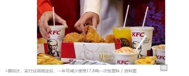 2.新加坡KFC18日宣布,为了减少使用一次性塑料,本周三起新加坡84家分店将不再提供塑料瓶盖和吸管。