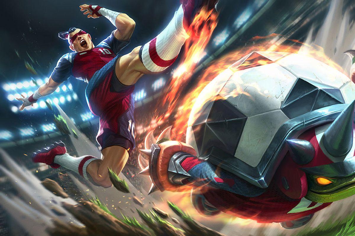 继四年前推出由卢锡安、茂凯、崔斯特、牛头和酒桶组成的五人队伍足球皮肤后,今年《英雄联盟》如约发布新的世界杯英雄皮肤,分别是扮演足球运动员的盲僧李青和扮演……足球的披甲龙龟拉莫斯,这两个皮肤也相当匹配他们的技能和游戏设定。