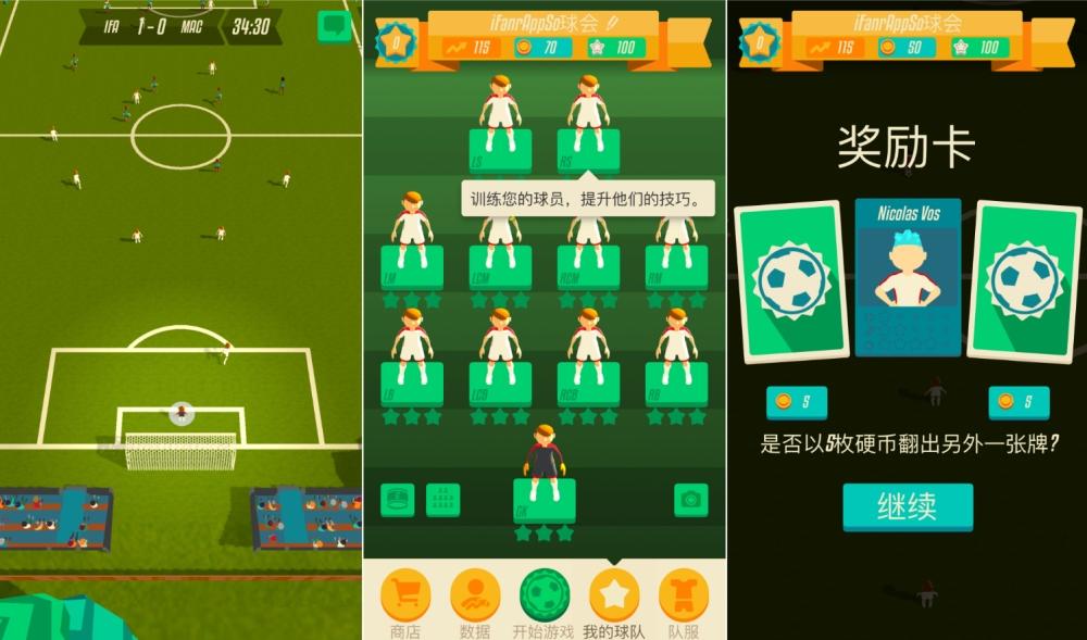 一款轻松简单的对战类足球游戏,比赛进行了大幅度的简化,只有奔跑、铲球和传球/射门三个维度的动作,每个人都能快速上手。一局比赛只需要 2~3 分钟,可以在碎片化的时间中完成对局,比赛获胜后还能抽卡获得球员和道具以提升阵容实力。