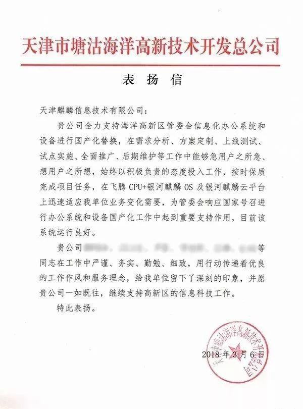令天津麒麟信息技术有限公司的全体员工倍受鼓舞