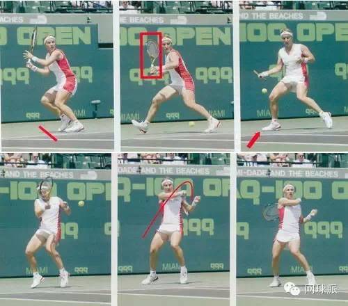 尽早判断落点,进场迎前在上升点处击球,同样需要积极的脚步在腰部习惯位置击球。
