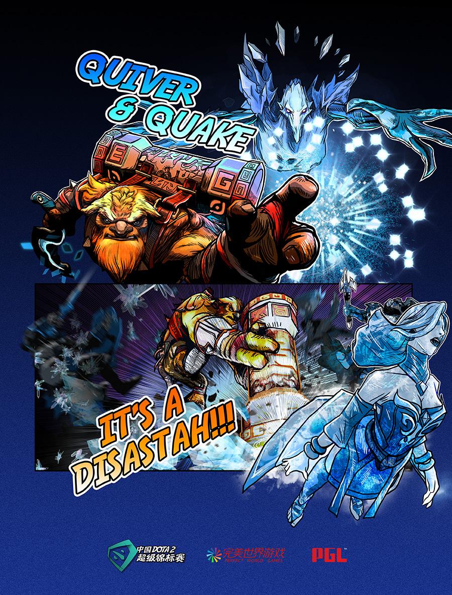 今天的Supermajor系列漫画,展示的就是这一著名瞬间。冰霜旋涡提供视野,冰晶爆轰精准发射,撼地者令大地震颤,也为EG开启了冠军之门。“It’s a disastah!”但TI5,并不是中国战队的灾难。