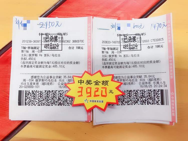 上面两张单子的主人是师徒二人,联手智取乌拉圭赢球和进球奖金!其中何的票3球本来想打1000元,老板娘手一抖多出了2000元,他考虑了3秒钟,当即买下!多中7700元,有胆识有魄力!