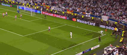 筋肉碰撞的伯纳乌,白衣白甲,一夫当关的后防主将,沉稳地将脚下的球分发给卡瓦哈尔、莫德里奇、克罗斯们,直到,那绝境喷发的到来。