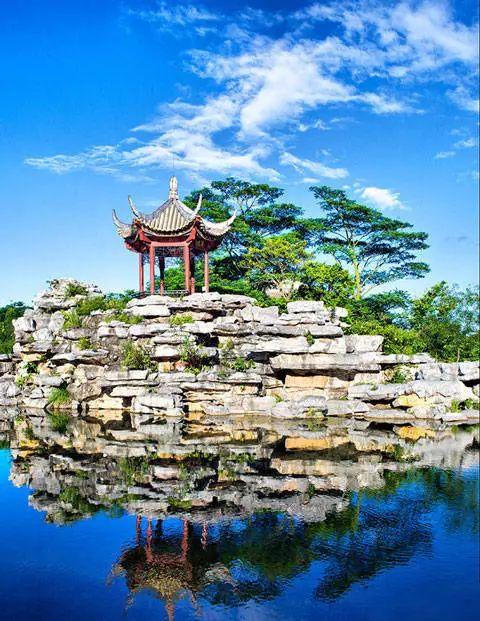 经过的每一处,都有别致景观。绿叶婆娑,与凉亭交相呼应;湖水荡漾,淌出了宁静自然;千万年岩石,历经百年沧桑,诉说着尘封往事。