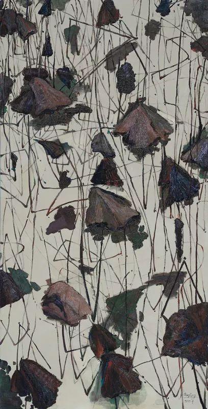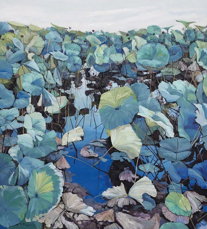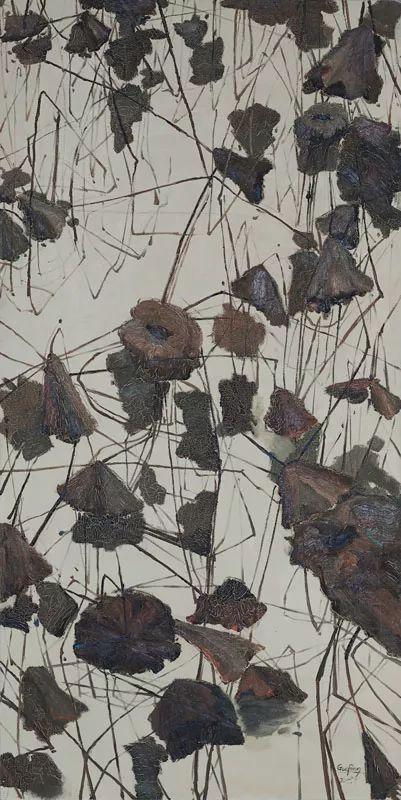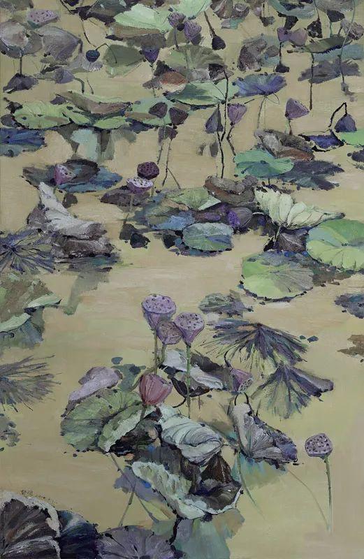 他的灵感来源于日常景色、静物、花木,作品切分明强调内心感悟及当下于画布上的际遇。即兴快速的动作,这种方法完全出自内心即时反应的倾向——作画其时下意识瞬间的取舍,随瞬间意趣删去物象细节而着重表现主体意兴心象。画中那些普通荷叶、风景和花木,看似漫不经心,又似乎霎那间涵了一种超然的神秘,一种无名的忧伤,这不全然是荷塘风光、花木静物,这是艺术家精神世界的呈露,以神写形。