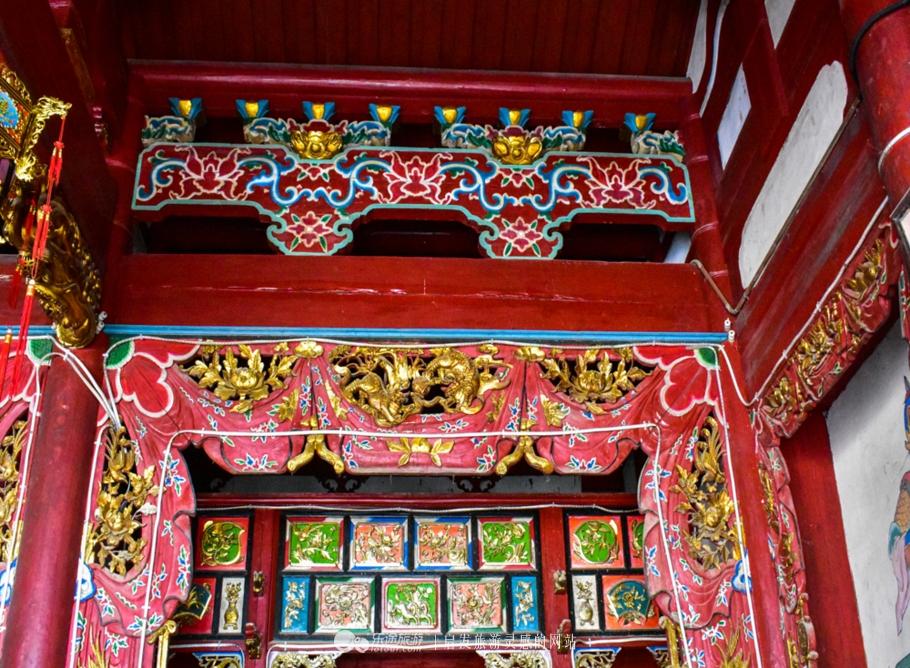 戏台两侧的厢楼建筑也十分精巧,雕花木栏杆架设其上,吊柱上部设置骑门雀替,下端装饰有垂莲,每一处设计都色韵古雅,匠心独妙,身临其中,仿佛回到当年,驻足木栏边,赏听一宿梵唱。