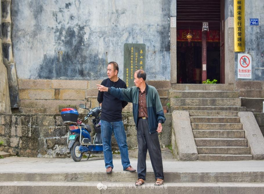 走到大殿外宋帝行宫又是另一番景象,殿外石砌平台,周围石栏,威武的石狮镇守于宫前,甚为壮观。前面有三棵古榕树,虬干盘挚,绿荫翁地。当地的林浦人饶有兴致的向我们讲述宋帝行宫的过往,话语之中全是对这个南宋末代小朝廷的褒奖,宋帝行宫是一个王朝的覆灭,为何林浦人对南宋君臣都大加赞赏呢?