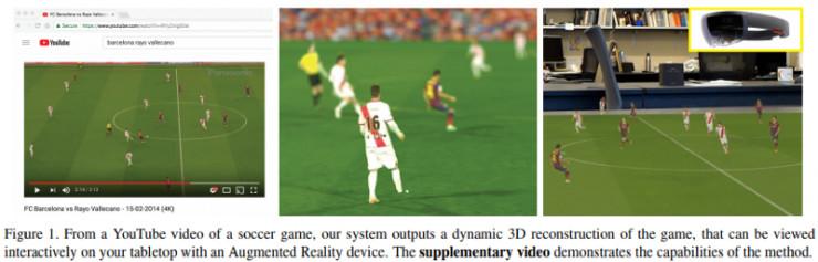 在世界杯进行之际,这篇论文的发布可以获得最佳时机奖了!这真的是 CVPR 计算机视觉里比较酷的应用之一。简单地说,给定一个足球比赛视频能够输出比赛的三维动态重建,从而训练模型。这就意味着你可以使用增强现实技术在任何地方观看这场比赛!