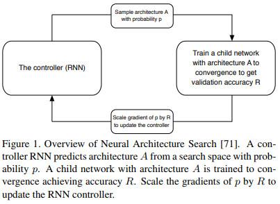最后但也重要的就是关于深度学习的未来的思考:神经架构搜索 (NAS)。 NAS 背后的基本思想是取代手动设计网络架构,我们可以采用另外的神经网络来 “搜索”最好的模型结构。这个搜索基于回报函数,是很聪明的。回报函数对那些在验证数据集上表现良好的模型进行奖励。作者在文中展示了一个比手动设计更加精确的架构。这在未来是有很大发展空间的,尤其是特定应用的设计。因为我们只需要将全部精力放在设计好手动设计 NAS 算法,而不是为我们特定的应用设计特定的网络。一个良好设计大的 NAS 算法是足够灵活的,可以为任意特定任务找到好的网络。