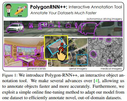 Polygon-RNN++ 允许用户在图片中每个目标周围设置粗略的多边形,然后神经网络会自动生成分割标记。这篇论文很好地论述了这种方法,这种方法也可以在分割任务中创建快速、简单的标记。