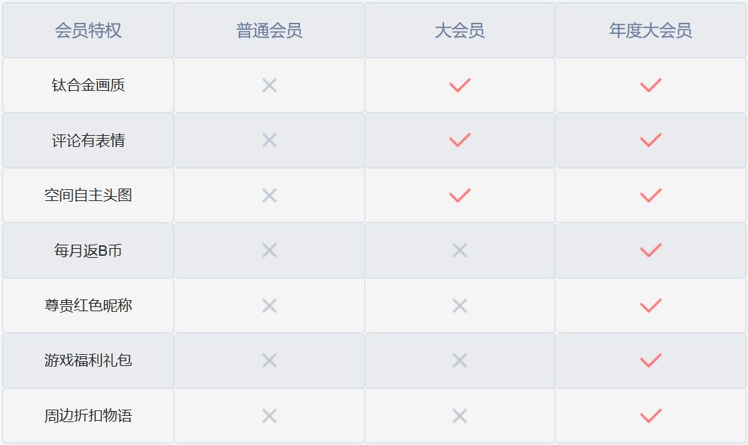 图1:B站“大会员”功能与普通会员对比