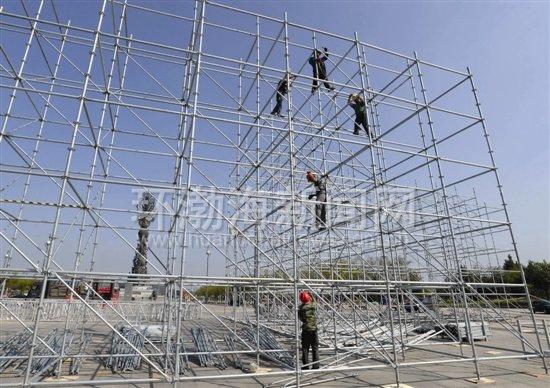 市民广场舞台紧张搭建