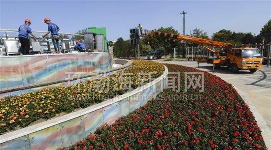 爱情漫道部分的灯光花坛紧张施工中