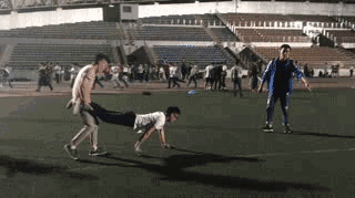 他们在运动场的各个地方值勤