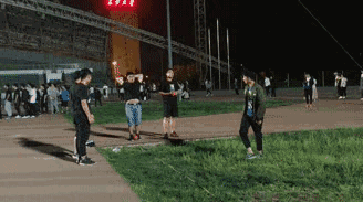 昏黄的路灯下,此起彼伏的加油声……