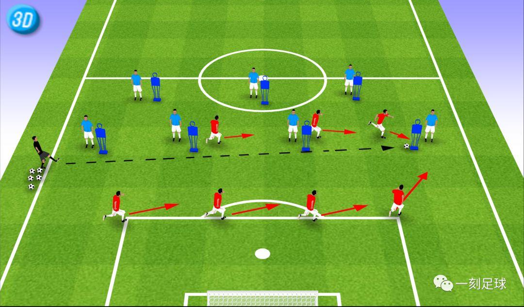 1. 球员不要盲目上前出脚防守,采取整体移动对进攻方造成压迫。