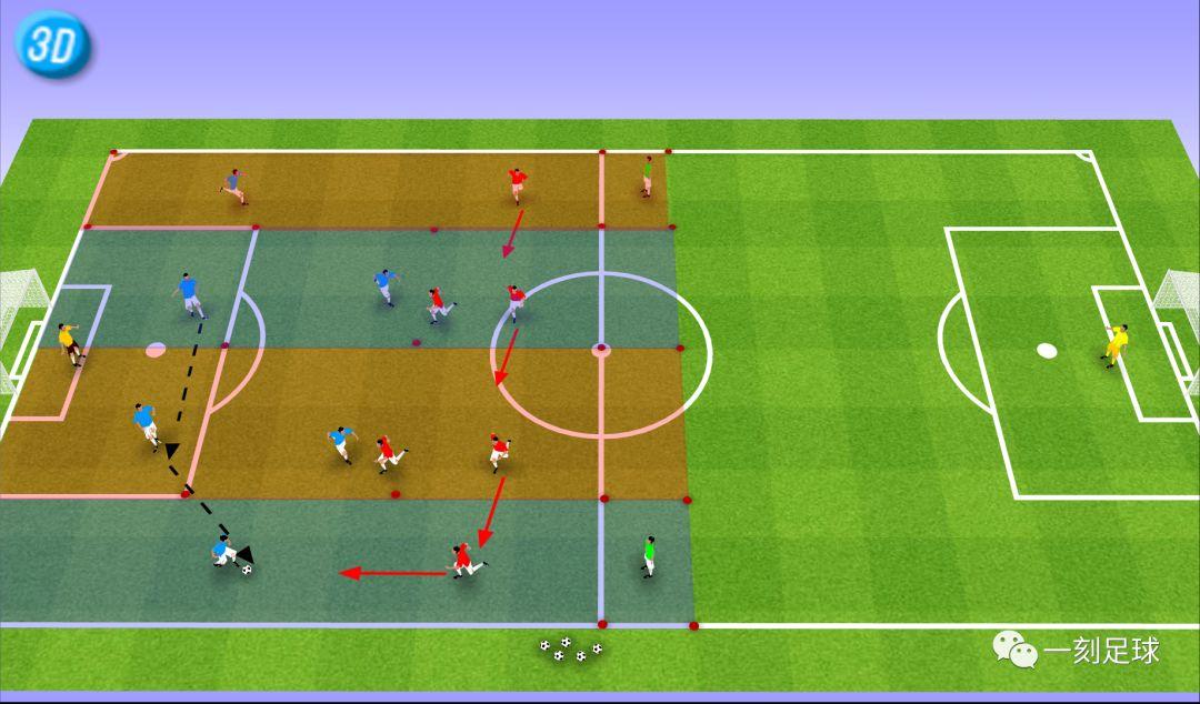 1. 由于多出一个小球门,当蓝队进攻无人防守的小球门时红队需要迅速补防。