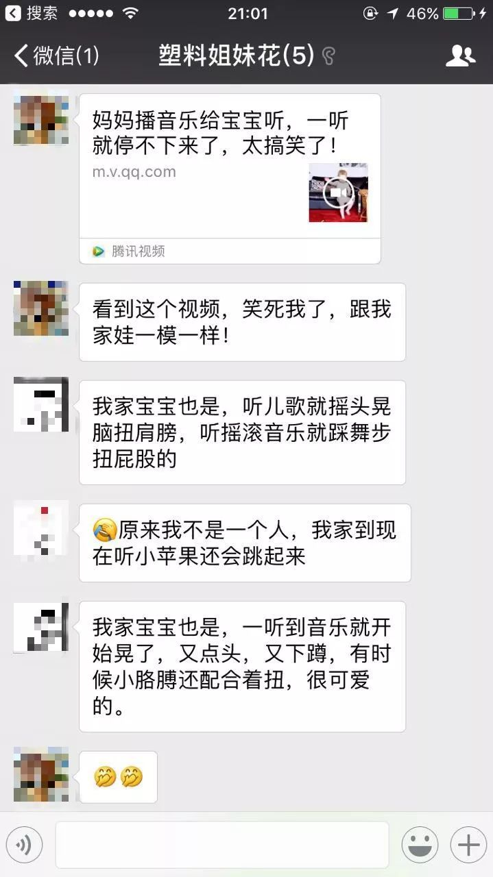 常常遇到这样的情况,宝宝一听到音乐,就会扭动起来。群里一聊,闺蜜们的宝宝都这样: