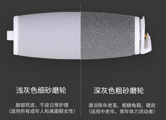 清洗也很方便,轻触侧边按钮,轻拉磨砂头,即可取下滚轮,拿清水冲洗干干净净,不用担心机身进水或者是皮屑残留机身的问题。月立电动修足器海配有防尘盖罩,不用的时候及时盖上,保护磨砂轮。