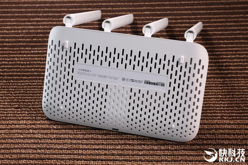 外观方面,小米路由器4采用简约纤薄的造型,配备4根全向高增益天线,采用大面积铝镁合金散热片、高导热率导热胶,以及底部大面积开孔,大大提升散热能力。