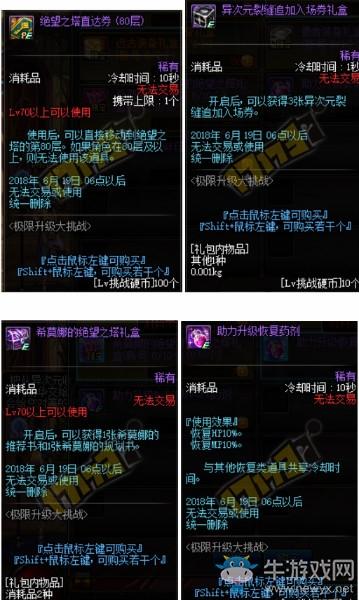 可兑换道具内有绝望之塔直达80层券、异次元裂缝追加入场券礼盒(3张,每张1次)、远古装备礼盒、勇者装备礼盒和各种消耗品。