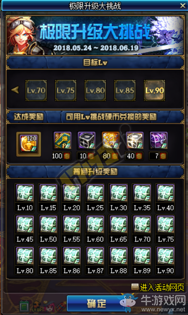 Lv挑战角色达到指定等级时可以获得“Lv挑战硬币”与“Lv突破奖励礼盒”。