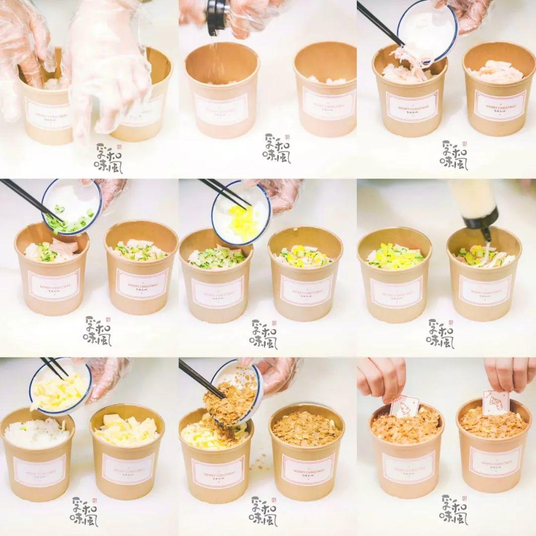 → 放生菜/蟹柳棒/炸虾天妇罗 → 成型/摆盘
