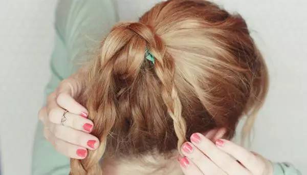 1.将马尾分为两束