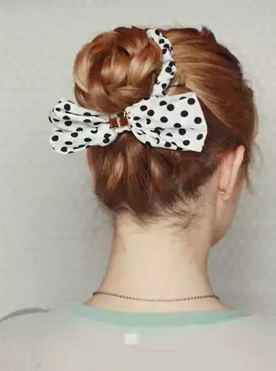 4.绑马尾时绕个圈,将剩馀头发用发夹固定
