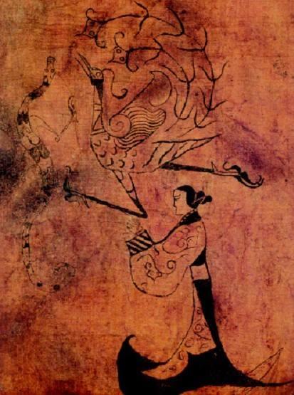 战国楚墓出土的《夔凤人物图》