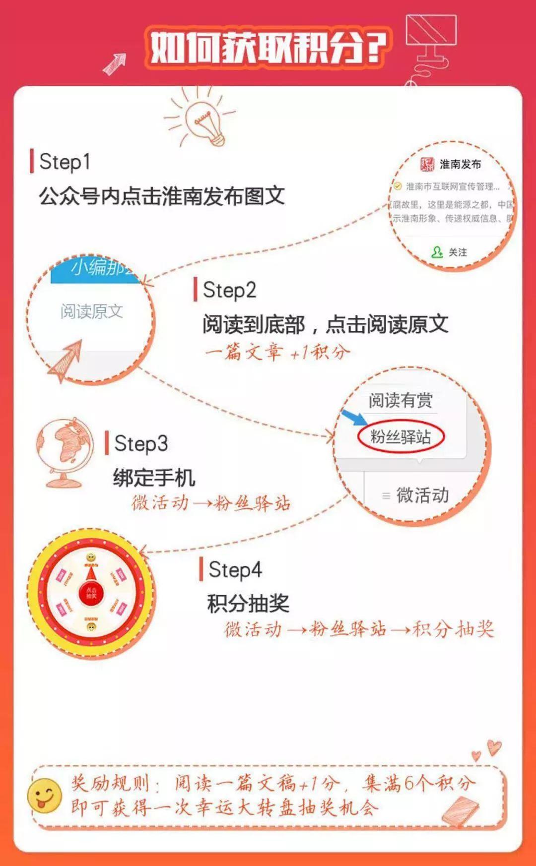 即日起,“淮南发布”开展阅读送积分,积分抽大奖活动。