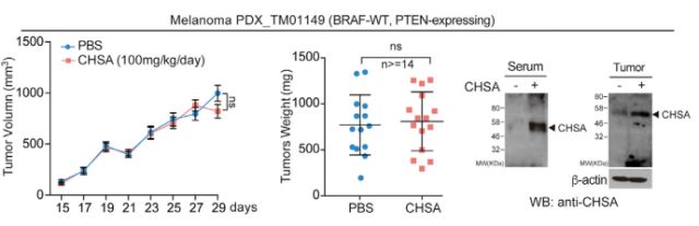 下:无BRAF突变肿瘤小鼠,CHSA不影响肿瘤生长速度