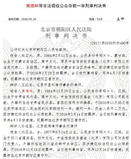 法院判决的情况是,涉案公司中金信安法人等5人均因非法吸收公众存款罪,被判处有期徒刑2-6年,罚款10-25万元。