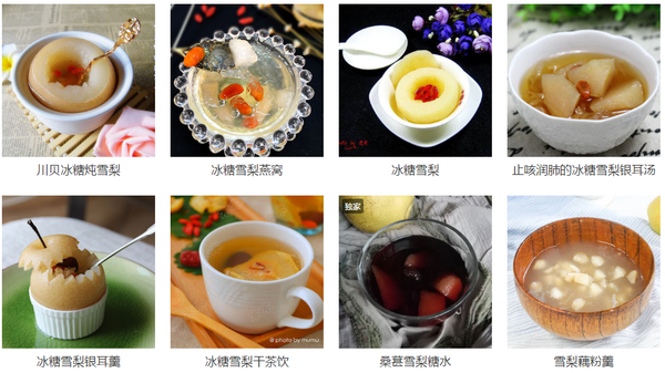 雪梨,雪梨可以润肺清热。可以配合川贝炖来吃。取雪梨一个,将上面三分之一处切开,然后挖掉中间的核,将川贝压成粉倒入雪梨底座中,加水和冰糖一起炖20分钟左右,然后吃梨喝水。这样可以缓冲雪梨的凉性,同时不影响效果。