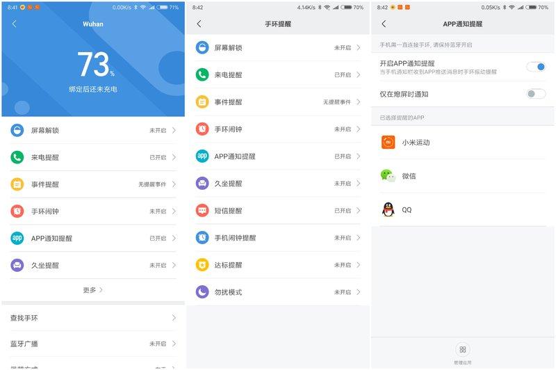 与以往的小米手环一致,同样在手机上搭配《小米运动》APP进行使用,适配过程亦是如此。通过《小米运动》APP,用户可以对小米手环3进行状态查看、功能管理等等。