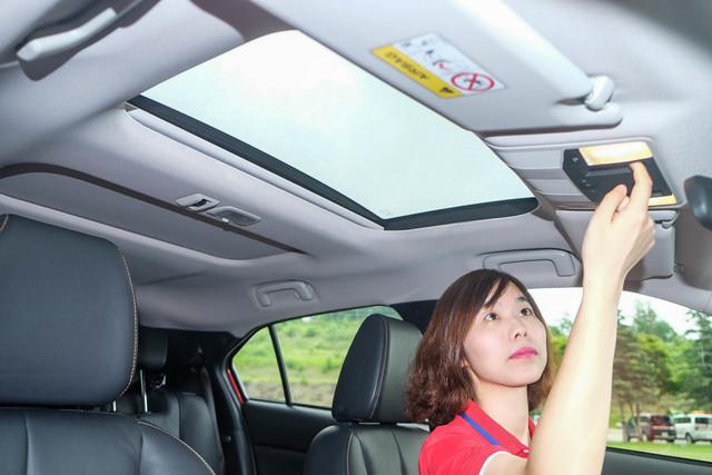 两段式全景天窗,前段可上掀和开启,面积比普通天窗要略大一些;而后段是封闭的,它的遮阳帘也只能通过位于中间钢梁上的控制键来打开,所以你没有办法一键同时打开前后的遮阳帘。