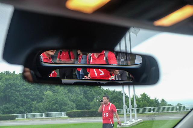 由于另类的尾部设计,车内后视镜的视野初次使用时有点怪,两段式后挡风玻璃确实增加大可视范围,尤其是下方的视野,但后排只要坐人,基本是看不到下段玻璃的。